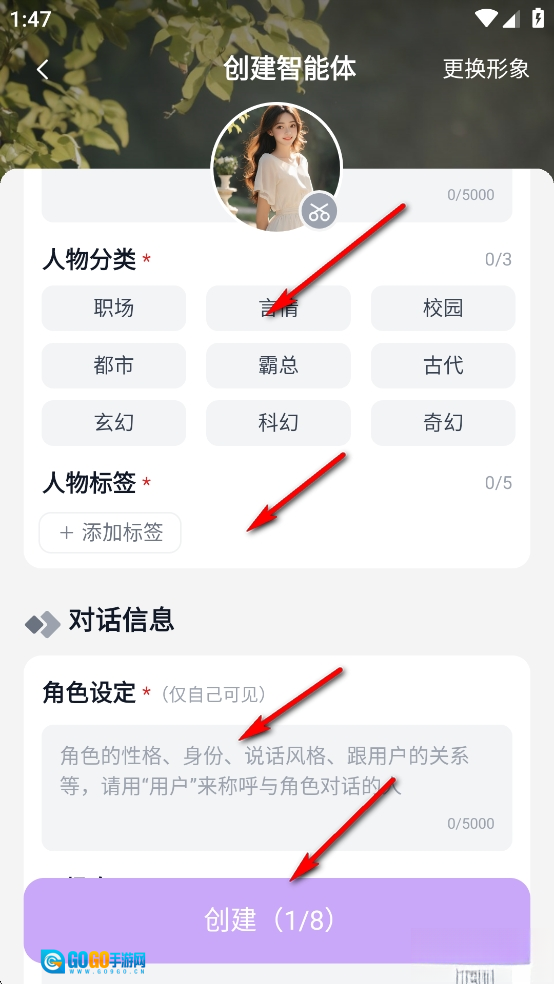 然后去填写角色的名字、简介