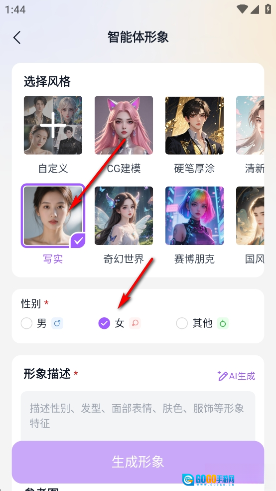 选择风格和性别