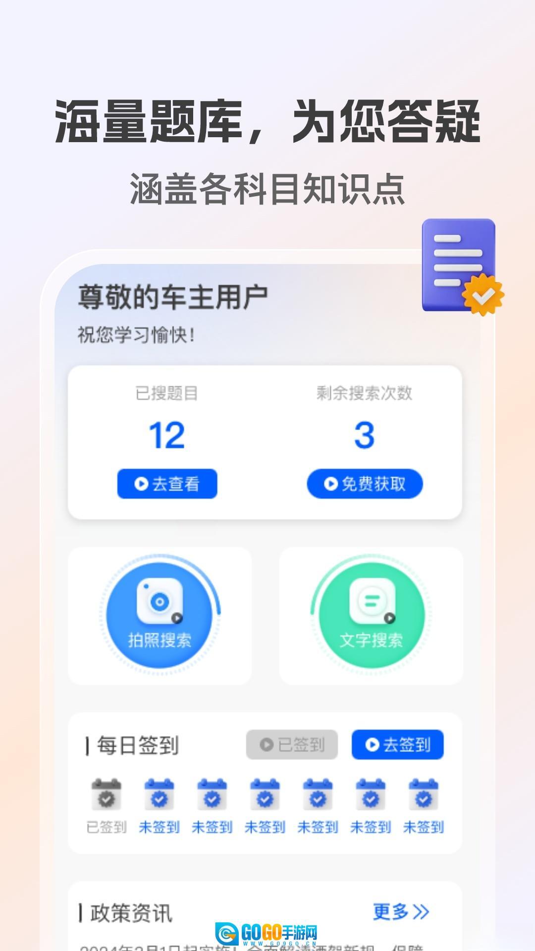 海量题库全覆盖:题库资源极为丰富,涵盖交通法规各科目知识点,无论是基础常识还是易错难点,都能找到对应题目,满足不同学习阶段需求,为备考打下坚实基础。