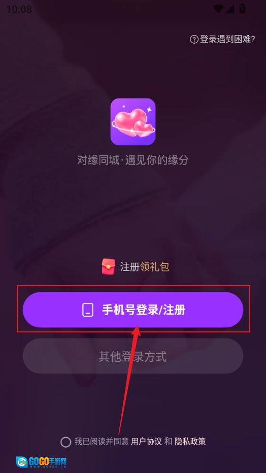 1、进入软件后,点击手机号登录注册