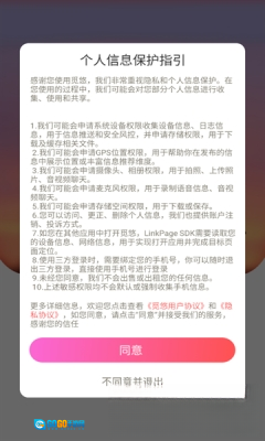 1、软件安装完成后打开,会弹出是否同意的提示,点击同意按钮即可进入注册界面;