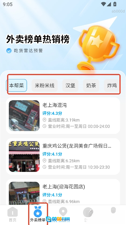 2,可查看附近的外卖排行榜单