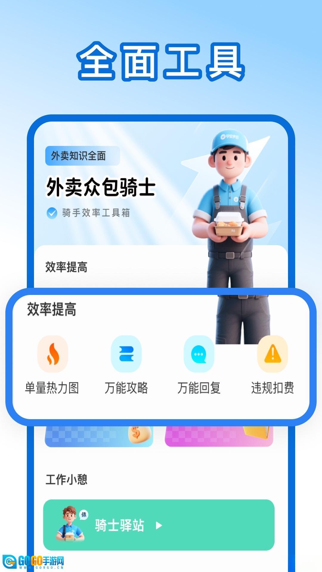 外卖众包骑手帮手堪称骑手跑单的得力伙伴。精准测速、全面驿站查询等特色实用,实时更新、个性设置等亮点突出,提效、增收、降险功能优势尽显。它精准解决骑手痛点,助力骑手轻松跑单、稳定增收,是外卖行业不可或缺的效率神器。