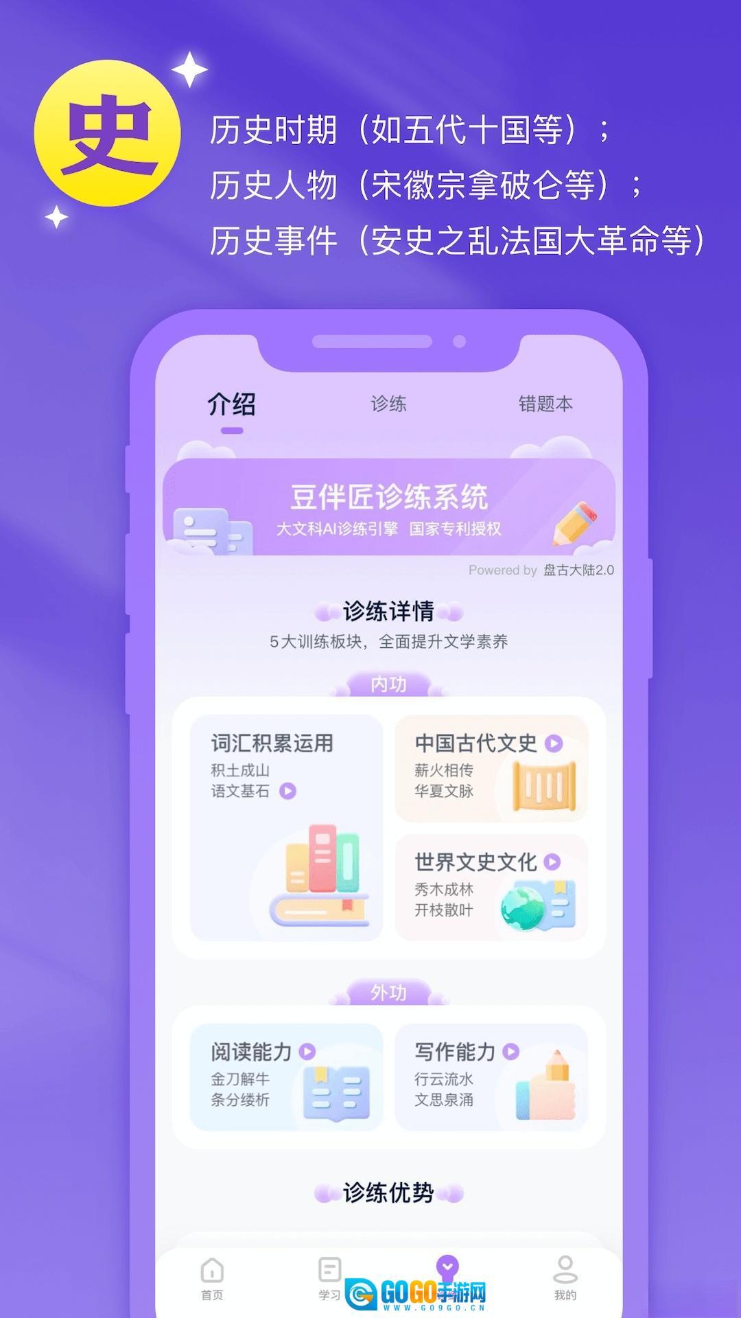 《豆伴匠》是一款专为6-18岁青少年设计的文史素养提升与读写训练平台,由豆神教育研发,覆盖“人、文、史、作”四大模块,通过L1-L12分级体系,系统化传授中外文史知识、名著赏析及读写技巧。以趣味化、轻量化学习模式,实现“学-练-测-评”闭环,助力学生夯实文史基础,提升核心素养。