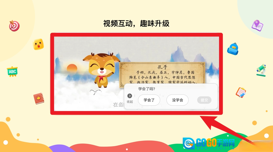 2、点击进入学习内容后,观看动画视频并选择“学会了”或“没学会”,进行互动反馈。