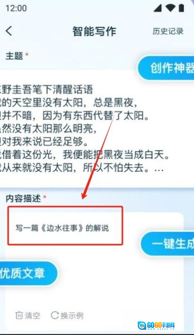 u200c3、输入主题与请求u200c:输入您想要写作的主题和具体要求,以便机器人更好地理解您的创作意图。