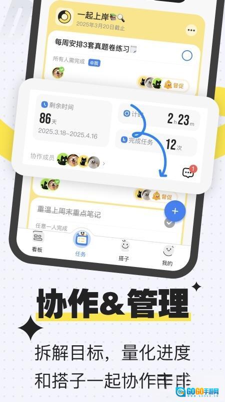 弹性化目标管理:提供短期冲刺与长期规划双模式,支持任务拆解与优先级排序,配合智能提醒系统,帮助用户建立科学的时间管理体系