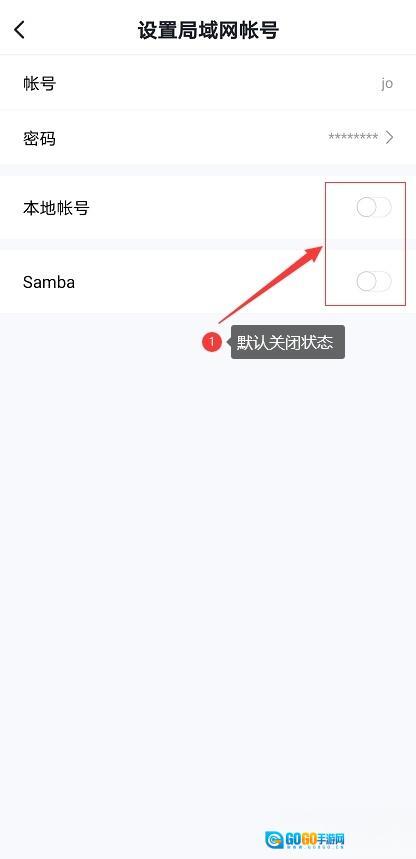 3、设置完成后,我们可看到当前本地账号和Samba默认为关闭状态,