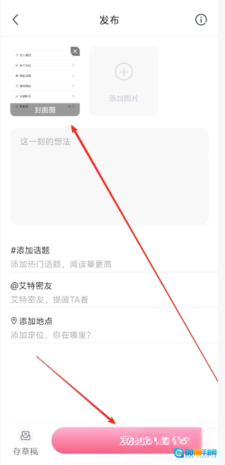 3.最后在发布页面中输入文案内容、话题、地点等内容之后点击发布即可。