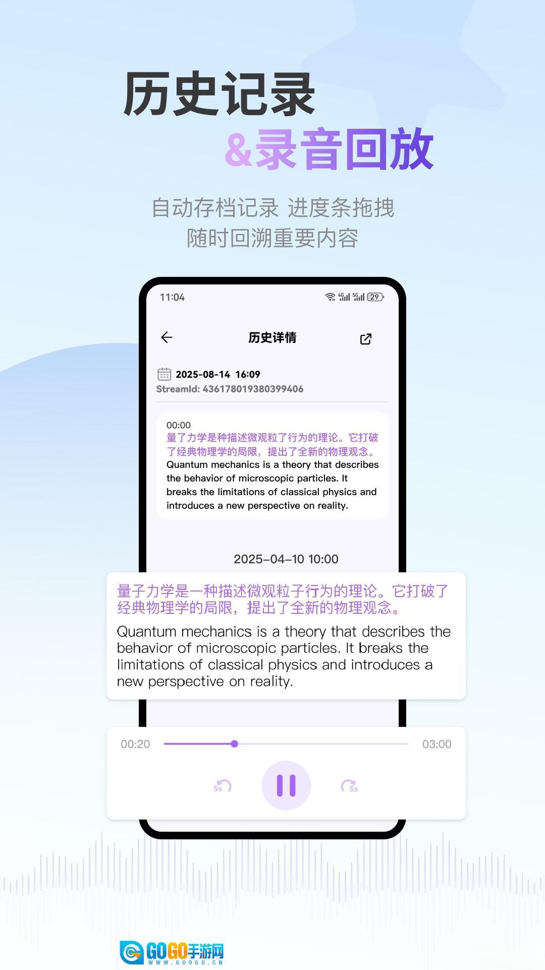 高精度语音转写:智能降噪、自动分段、标点修正,一键生成清晰文字稿,适用于会议记录与学习笔记。