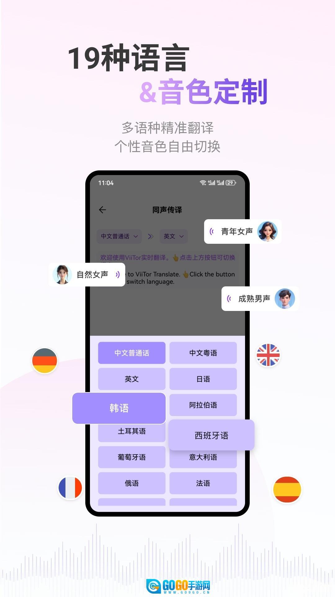 多语言互译矩阵:支持任意两种语言间的双向即时转换,涵盖英语、日语、阿拉伯语等19种语言。