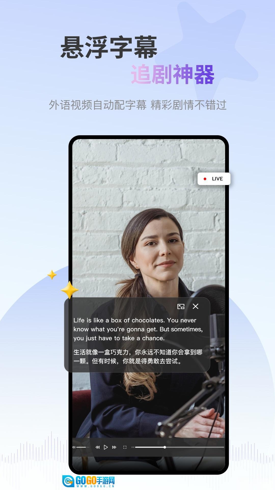 实时双语字幕生成:视频播放时自动识别音频并生成翻译字幕,支持TikTok、YouTube等平台,无障碍追剧。
