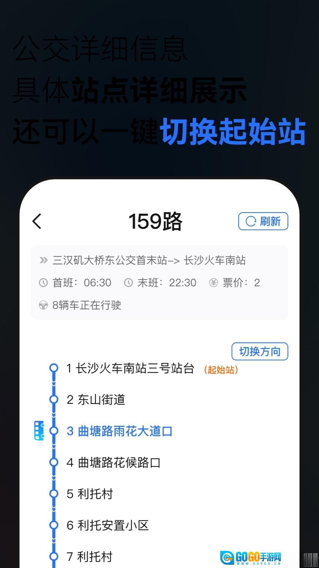 一键切换超灵活:在查看公交详细信息时,支持一键切换起始站功能。无需重新输入信息,只需轻轻一点,就能快速将出发地和目的地互换,重新规划出行线路,方便用户根据实际行程变化灵活调整出行方案。