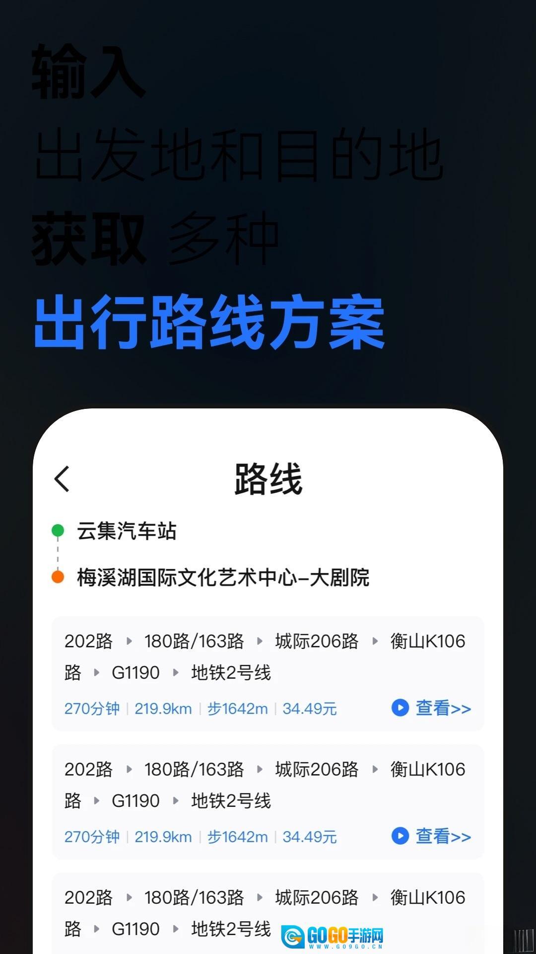 线路规划多元化:当用户输入出发地和目的地后,软件会综合考量公交、地铁、步行等多种交通方式,提供多种出行线路方案。不仅展示不同方案的耗时、换乘次数,还能标注各方案的优缺点,方便用户根据自身需求选择最合适的出行路线。