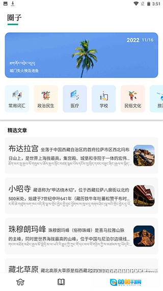 沉浸式学习生态:通过“每日一句”“精选文章”等模块构建语言环境,结合藏文书法展示、民俗文化解说等多媒体内容,让用户在碎片化时间中感受语言魅力。
