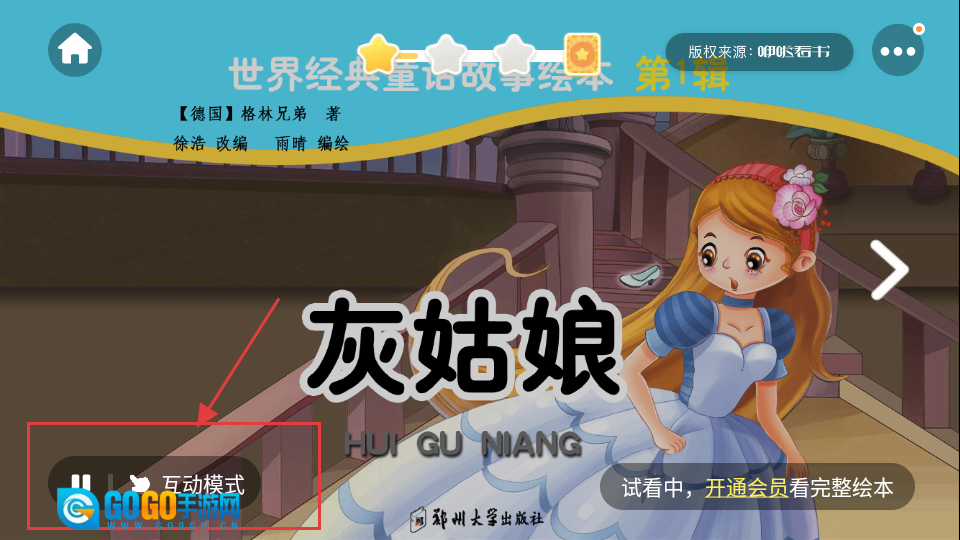 4、《灰姑娘》绘本阅读页面,有互动模式,能让阅读更有趣,快试试。