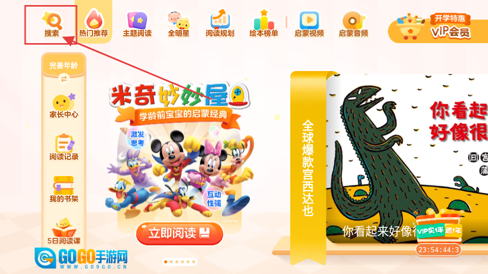 1、首页有搜索、热门推荐等功能,想找绘本就点【搜索】,超方便。