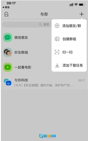3、点击添加按钮后界面会弹出一个下拉列表,然后您只需点击添加朋友就可以了;