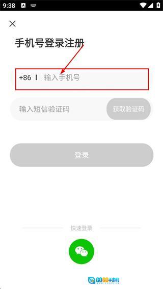 2、在登录选项页面,点击手机号登录选项,进入手机号登录注册界面。