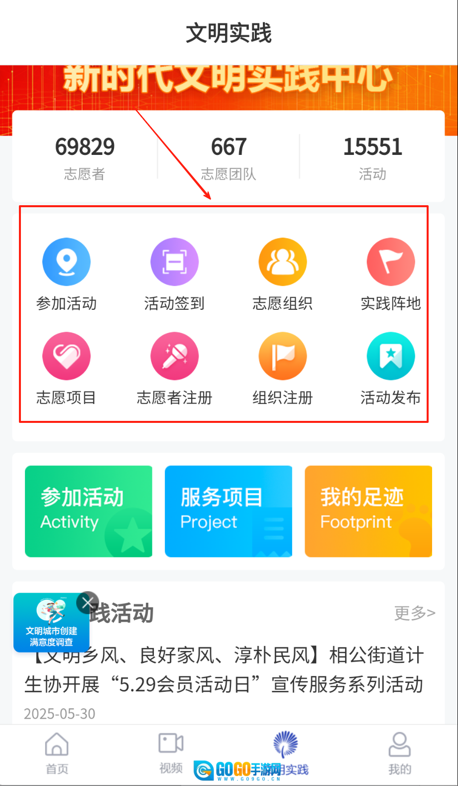 3、文明实践板块支持在线提参加活动或实践阵地,系统自动跟踪处理进度。