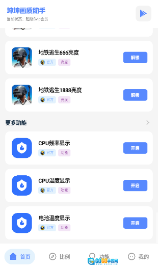 《坤坤画质助手》是一个非常出色的吃鸡游戏助手,通过简单的操作即可解锁高质量的画质选项,包括极限画质和高达120帧的流畅体验。而且它使用起来非常方便,可以为玩家提供画质帧率的提高。超过60帧极致体验,游戏很流畅,吃鸡体验过程非常的爽快。提供的功能强大且易于使用。用户还可以自定义各种功能,为用户提供高质量的游戏体验。