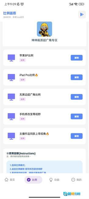 2、点击比例解锁,即可修改游戏视野