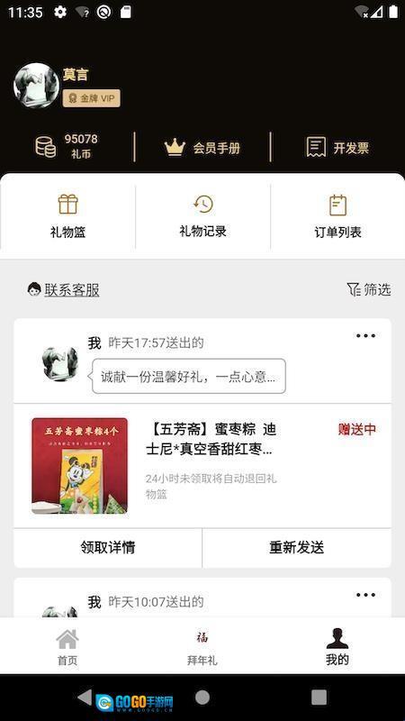 5、打开“我的”,能更好地管理你的礼品,帮助用户快速使用。