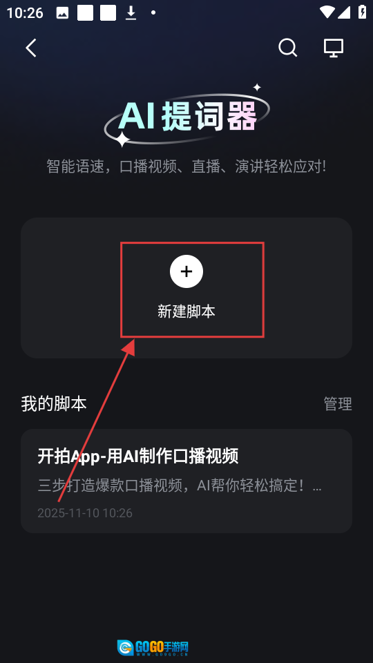 2、进入提词器页面后,点击【新建脚本】按钮,就能创建新的提词脚本啦。