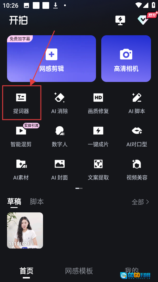 1、在首页找到【提词器】功能按钮并点击,即可进入提词器页面。