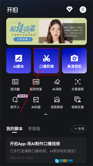 打开软件,点击主页口播剪辑功能。