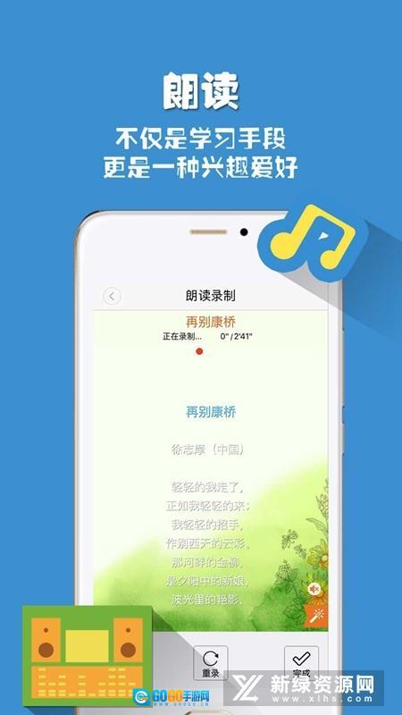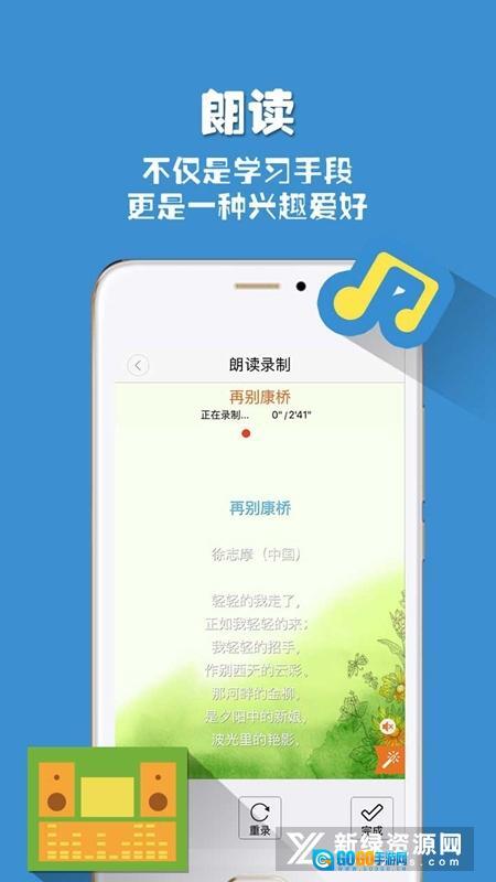 1.专业诵读范例展示,在线聆听品读诗文经典佳作 2. 自主诵读配音练习,快速提升语文素养的有效方式