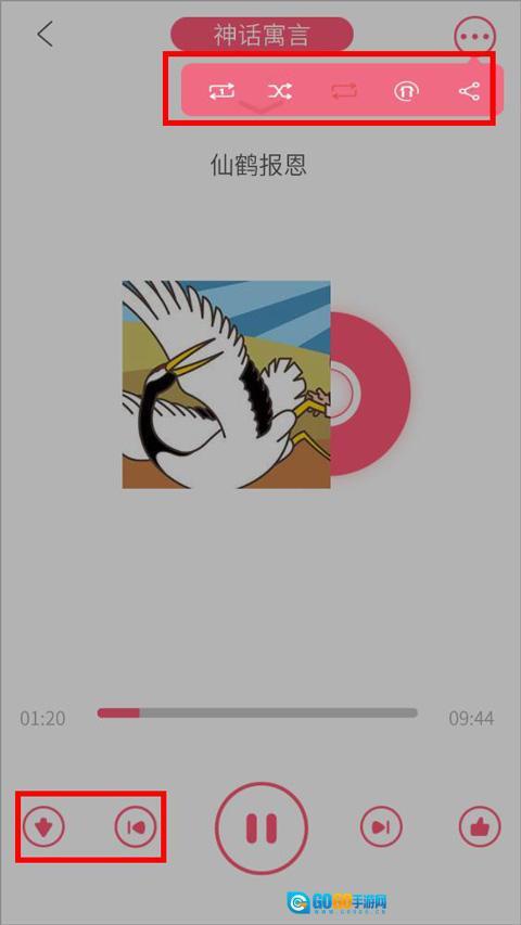进入播放页面后,用户能够进行音频播放、设置播放模式、分享内容以及切换下一首等操作。