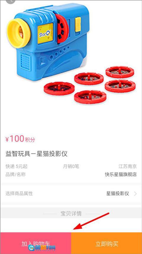 2、进入换购物品页面后,用户能够查看商品换购所需的积分、发货地、品牌名称、商品属性及详情等信息,随后可选择点击加入购物车或立即购买。