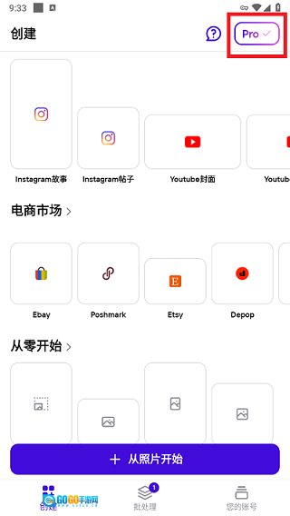 1、打开软件,在软件右上方有个“pro”标志,点击他