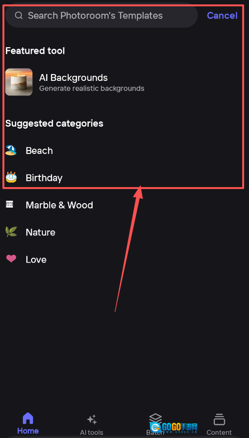 2、第二张截图展示了模板库,查找背景模板时,你可以直接点击顶部的搜索框,点击它就能快速应用到你的照片上,整个过程相当直观。