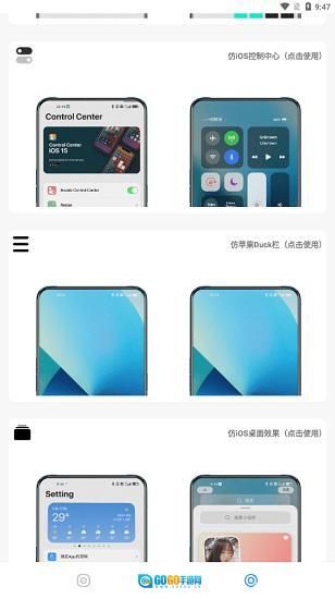 2、想要iOS风格的桌面,点击IOS分类下的仿IOS教程,按照提示安装OP启动器,在设置中调整应用程序图标和桌面布局。