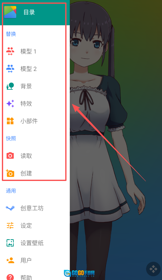 4、我们回到“目录”界面,点击“模型”或“替换”分类下的“模型1”,软件便会呈现可更换的角色选项,这样桌面上的小伙伴就能焕然一新了。