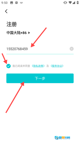 2、输入要注册的手机号,勾选【阅读并同意】按钮后点击【下一步】。