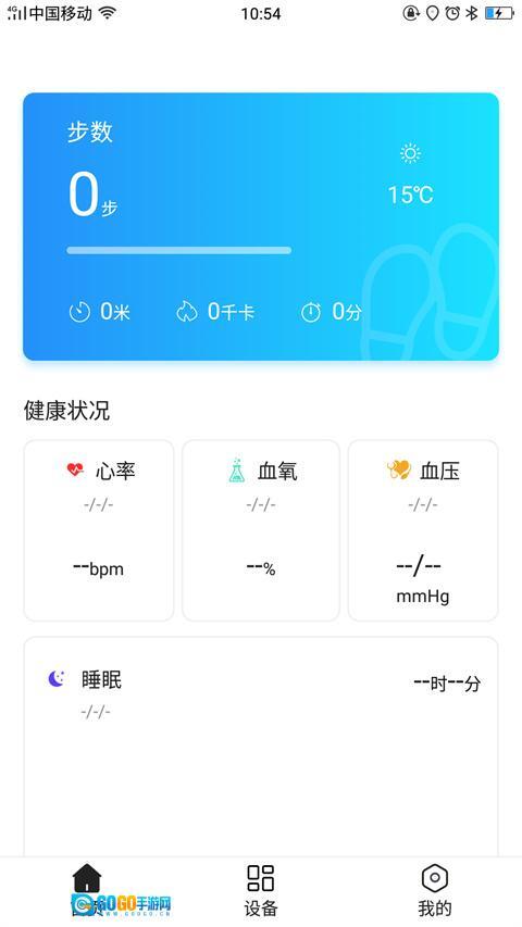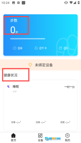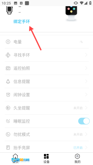 2、切换至设备页面,点击【绑定手环】按钮即可添加个人设备。