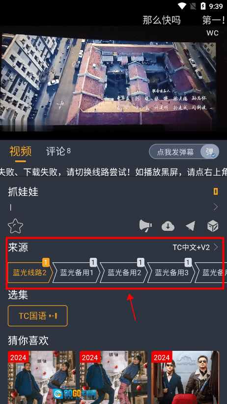 3、要是碰到视频卡顿之类的情况,可以在下方的来源处切换来源,这样就能解决卡顿问题了。