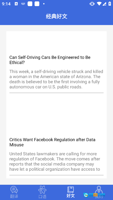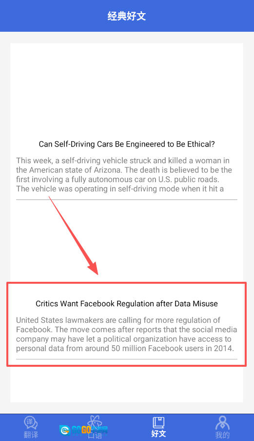 3、若想提升阅读能力,不妨看看好文板块里的精选短文,内容比较新颖,还能顺带了解一些时事动态。