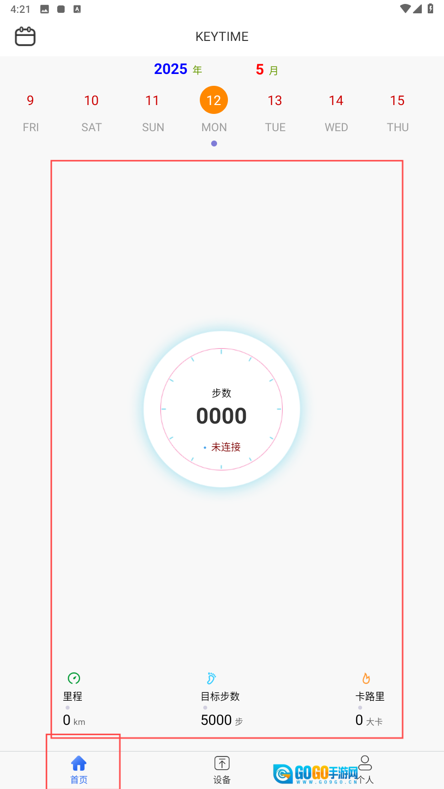 1、打开应用在首页中可以查看当天步数。