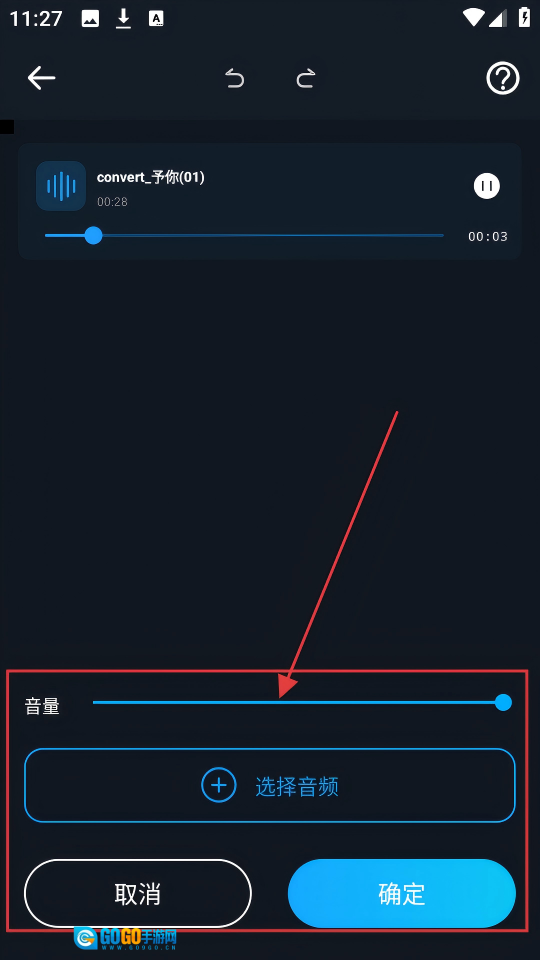 4、调整好音频后,可调节音量,还能添加其他音频,最后点击【确定】完成编辑。