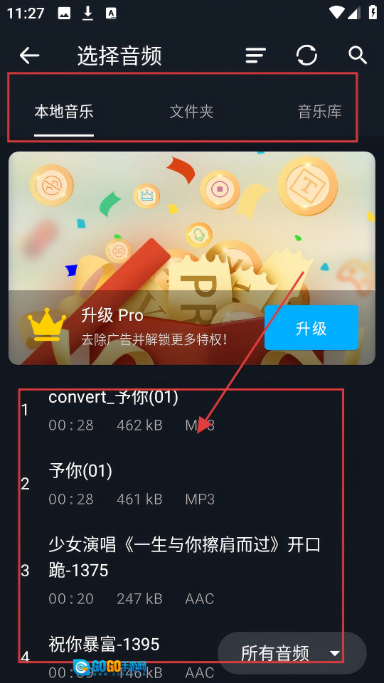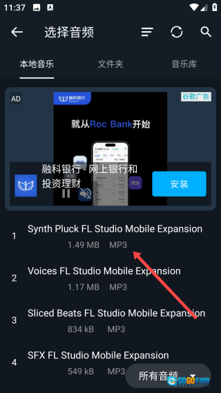 2、选择音频页面,能从【本地音乐】等分类里选音频,选好后就能进行后续编辑啦。