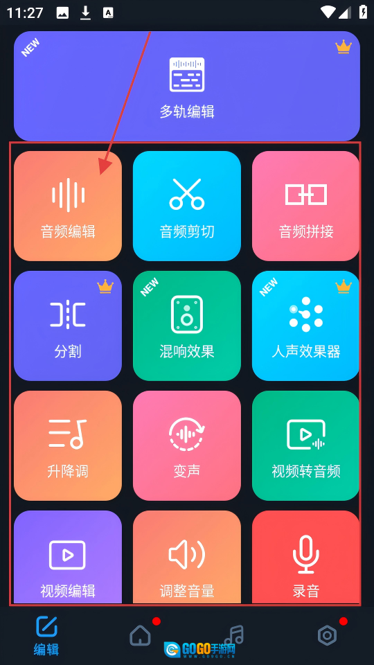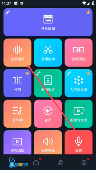 1、编辑页面有【音频编辑】功能,点击它能进入音频编辑流程,开启音频创作超有趣。