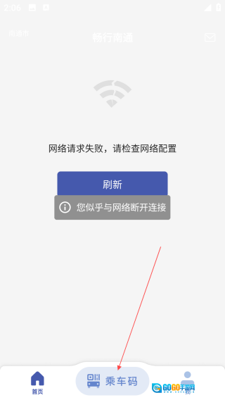 1、打开畅行南通掌上公交,点击【乘车码】。