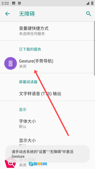 2、打开设置页面后,点击【手势导航】。