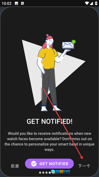1、打开小米手环6表盘,点击【next】。