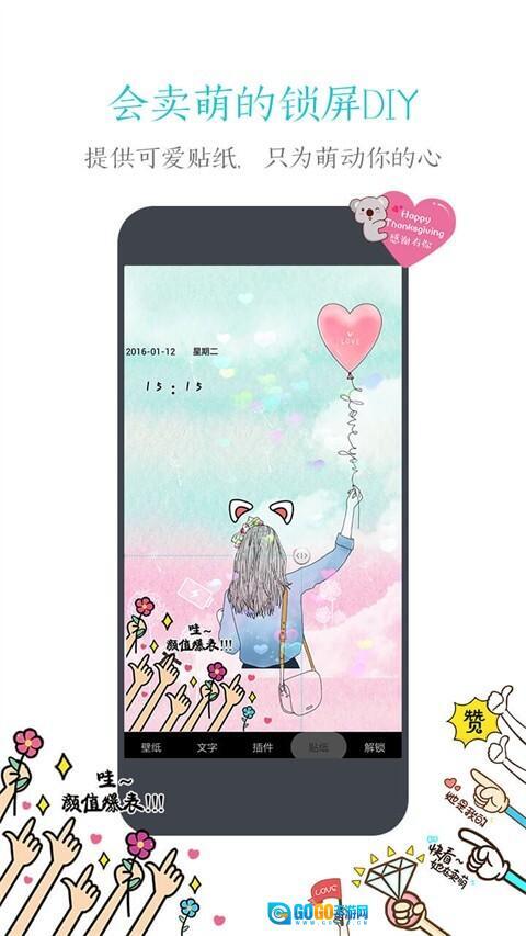 5、个性化创作支持:配备贴纸、色彩等DIY素材,允许自定义锁屏外观,助力创意灵感的释放。