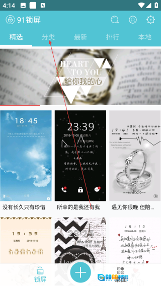 1、打开91锁屏壁纸,点击【分类】。